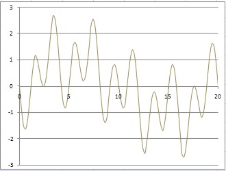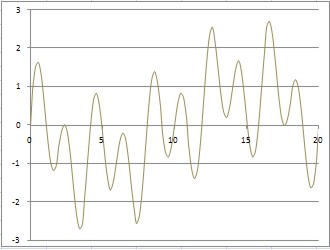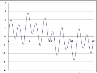 Budeme pracovat s následujícími signály, jejichž průběhy jsou zobrazeny na obrázcích níže. Signál na obrázku č. 3 označíme za náš užitečný signál, který chceme kabely přenést do mixážního pultu, upravit, smíchat s dalšími signály a poslat zpět k podiu do PA systému. Signál na obr. 4 je sinus 50Hz, tedy napětí naindukované na signálový vodič prostřednictvím elektromagnetické indukce. Je však doufám jasné, že ne vždy bude užitečný signál i rušivý signál vypadat takto, v reálu jsou průběhy jednak neperiodické, mají mezi sebou fázové posuny a jsou podstatně složitější (stačí si jen vybavit frekvenční spektrum zvuku kytary :-)).